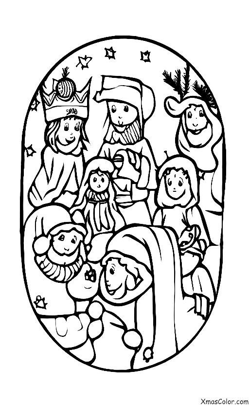 This coloring page would be set in a stable with baby Jesus, Mary, and Joseph. The animals in the stable would be looking on as the family sleeps.