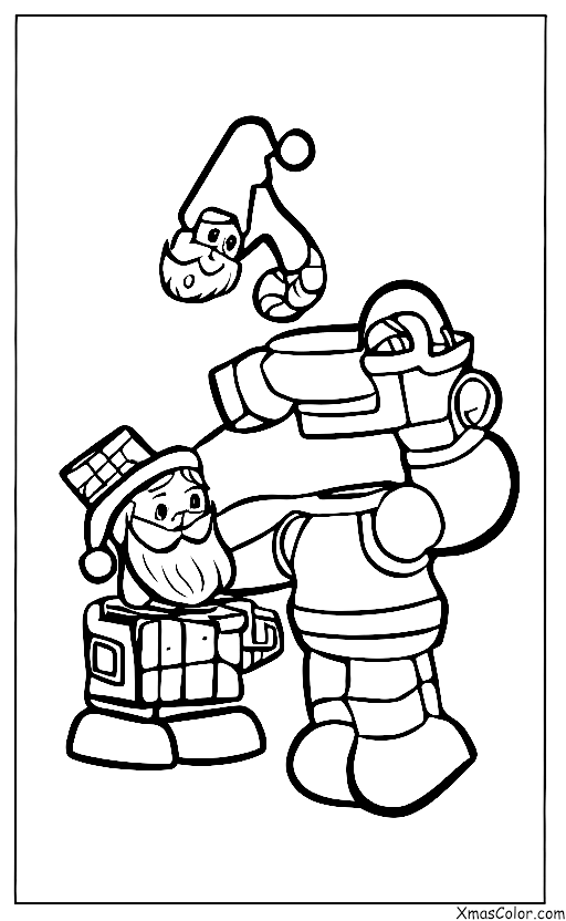 Santa is in his workshop with a robot. The robot is helping him make toys for all the good little nerds.